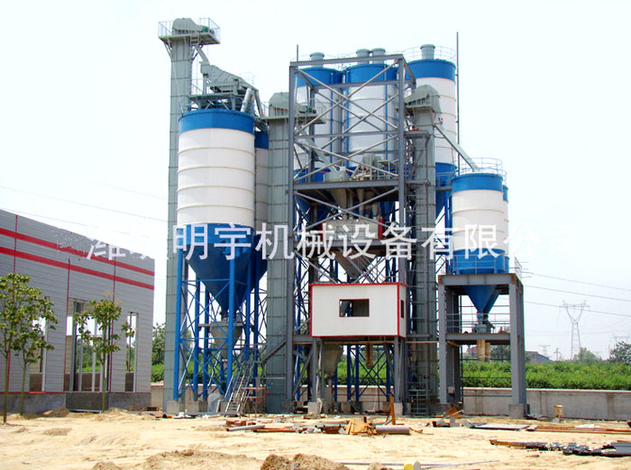大型預拌砂漿生產線,主要由原料儲存倉、配料系統、待混倉、2-6立方主混合機、原料儲存倉、輸送機、電腦自動計量包裝機(適應于閥口袋)、電控系統等組成。適應于普通干混砌筑砂漿的生產(如:抹灰砂漿、砌筑砂漿地坪砂漿、裝飾砂漿、防水砂漿等)。混合機內膽和機件全部采用專用耐磨材料制造,耐磨性特別強,使用壽命長,具有國內同類產品不可比擬的優越性,在同行業中占據重要地位。整套設備性能穩定,物料混合均勻,具有能耗低、投資少、見效快、占地小、操作簡單等諸多優點,5-8人即可操作,每次可以混合砂漿4-6噸,每小時可生產20-40噸左右。